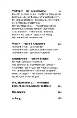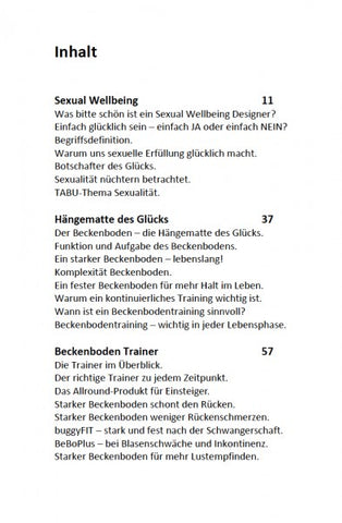 Warum wird der Beckenboden als „Hängematte“ bezeichnet? Und warum sind Frauenärzte Botschafter des Glücks? Die Kernaussage des Buchs ist: jeder hat einen Beckenboden und sollte die Beckenbodenmuskulatur ein Leben lang regelmäßig trainieren, um damit einer Vielzahl von etwaigen Problemen vorzubeugen und … um glücklich zu sein.