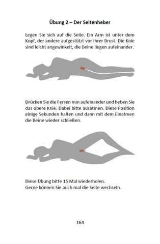 Gemeinsam mit dem renommierten Physiotherapeuten Herrn Christoph Thaler haben wir Ihnen die wichtigsten 11 Übungen für die Stärkung und das Training des Beckenbodenmuskels zusammengestellt. Ganz einfach beschrieben mit jeweiliger Zeichnung und Erklärung. Übersichtlich und groß abgebildet, pro Übung eine Seite. Einfach und übersichtlich, damit Sie sich motiviert auf Ihr Training konzentrieren können.